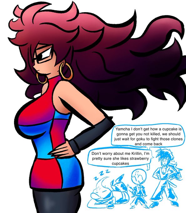 i am very glad that the dragon ball character designers gave the godlike evil robot thats basically cell and buu combined such a cute outfit