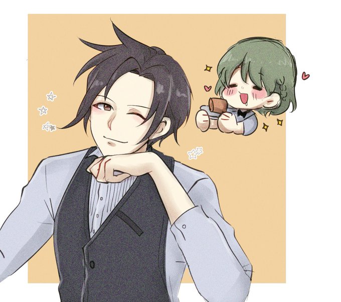 @8_s ワーイ!!!!わたくしもいつも八ノ助さんのハッピーを祈っています!!!!!!🥳🥳🥳✌️今年もハッピーな一年になりますように…🙏あと実は真ん中も描いていたので(?)よかったらお納めください!!!!