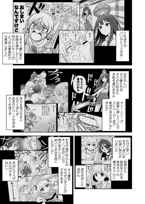 (3/3)というわけで2/16(日)シンステ13で頒布予定の新刊「パンデミックボ(下)」のサンプルです。もりくぼが逃げ惑うドタバタギャグ漫画がついに欲まみれのPまで出張ってきてようやっと完結です。前作にあたる上・中巻も頒布予定ですので併せてよろしくお願いします~