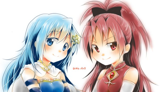 Todays couple is Kyoko and Sayaka from Madoka Magica! They are possible/implied semi canon with possible feelings!