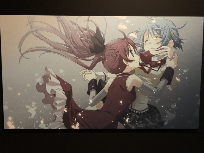 まどマギ展行ってきたー(o ;∀;)o衣装展示が可愛すぎる!マミさんの魔法少女服は実体化しても可愛すぎるしマミさん自体可愛いし、魔女空間も最高だった✨杏子ちゃんとさやかちゃんのこのイラストほんと好きっっ😭物販にもお布施してきたっ✨新作楽しみにしてるっっ。
