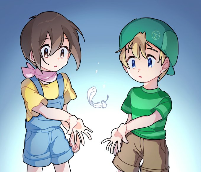 今回は一旦幼年期に戻ってもらって、新アニメの太一とヒカリ、コロモンを描きました。