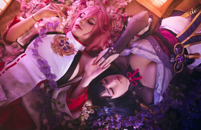 con 🦊 @KumyLovu (yae miko) y⚡ @Vicky_Kujikawa (raiden shogun).