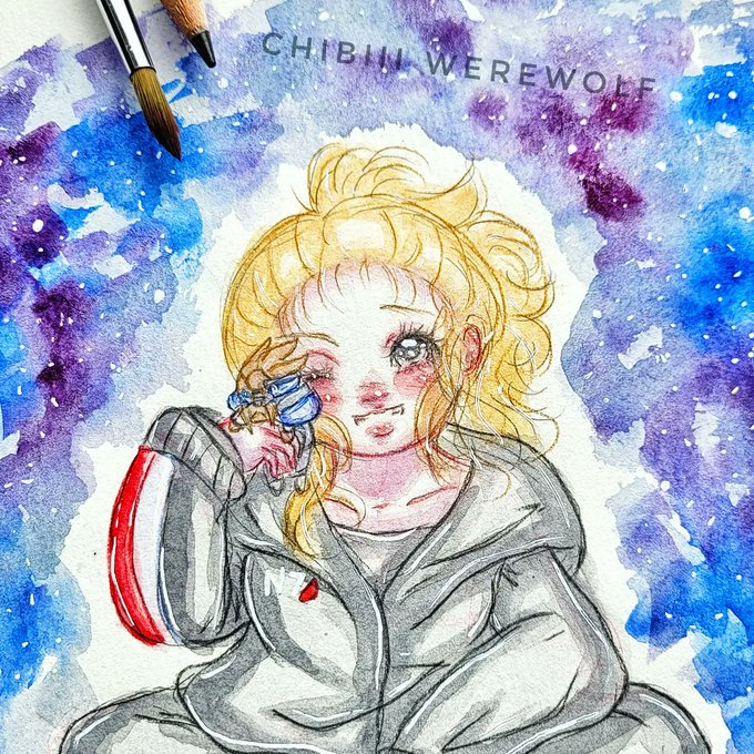 Happy #N7Day to My fellow #MassEffect fans! This Year I painted My Shepard holding a plush of Her space boyfriend (Garrus) since I didn't wanna torture Myself trying to draw a Turian lol. #ArtistOnTwitter #Watercolor