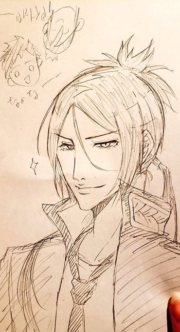 (ตัดปัญหาการวาดตัวโดยการไม่ต้องวาดมันเลยค่ะ–) ส่วนผมสับปะรดพี่แกก็วาดยากมาก tt รักตาสองสีนั่นจัง