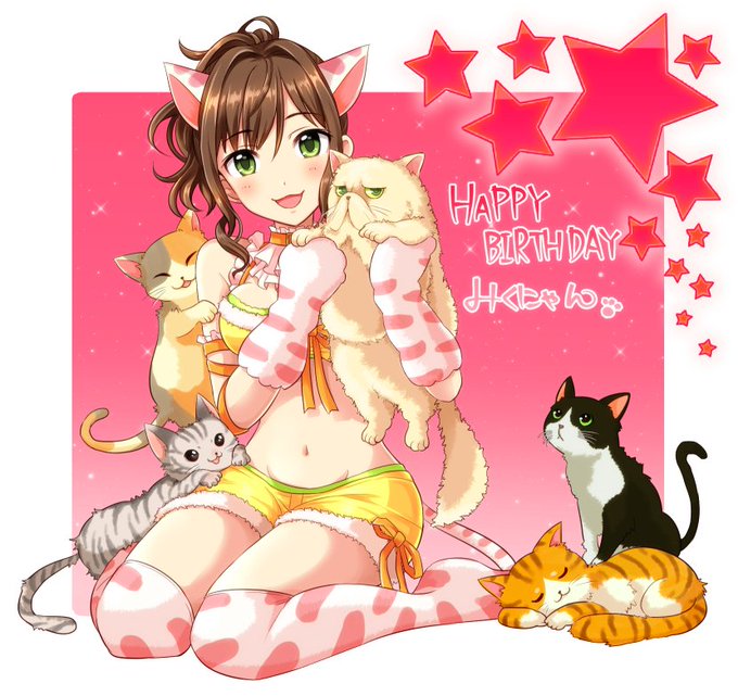 みくにゃんお誕生日おめでと…!おめでと…!🎁💘🎂😻🎊過去絵だけどお祝いさせてくだせ…!今描いてる絵絶対完成させるよ…!!!😻🎉 #前川みく