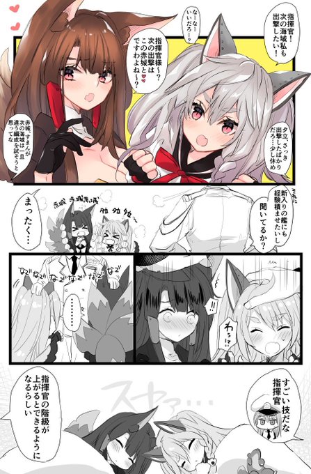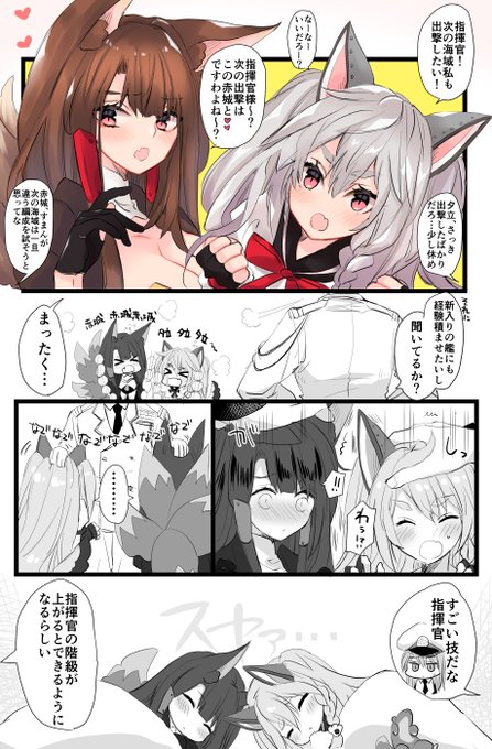赤城と指揮官と夕立となでなでの漫画です。 全艦で出撃できたらいいのに #アズールレーン