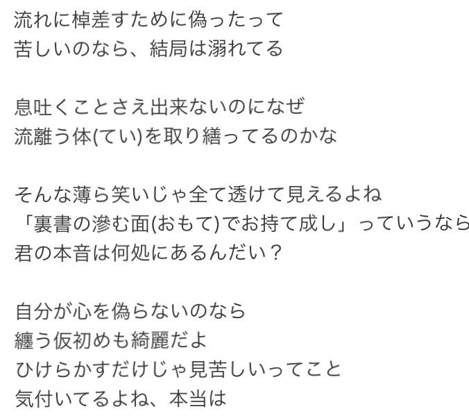 その自己紹介で「そんな薄ら笑いじゃ透けて見えるよね」、「裏書に滲む面でおもてなしって君の本音はどこにあるんだい?」