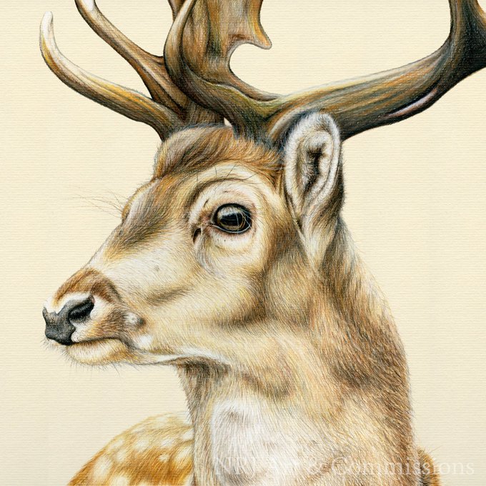 Here he is, my illustration of a buck #FallowDeer! I'm really pleased with how he has turned out, especially those statement antlers 😍 The original will be for sale at the @CountrymanFairs #MidlandGameFair which is just over two weeks away now 🎨#WildlifeArt #ColourPencil