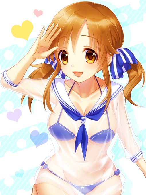 > 十時愛梨ちゃんが見たいです! https://t.co/tkwSO7Jrld はいどうぞ! 似合いそうって思って、RTで見かけたシースルーセーラー下着っぽいやつ着せてみました。折角だから差分も。お題ありがとうございました!