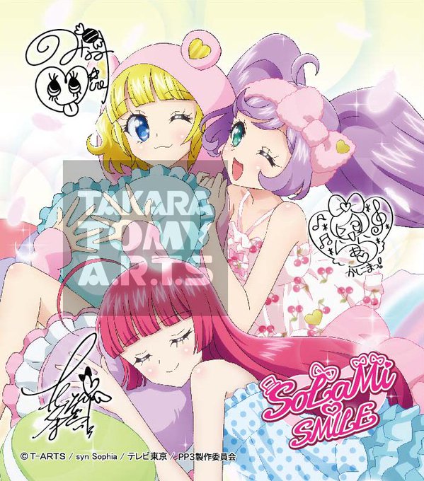 『プリパラ サイン色紙コレクション4』描き下ろしイラスト2つめを大公開!仲の良さそうなSoLaMi♡SMILEのパジャマパーティーです☆10月の発売までお待ちくださいね♪ #pripara