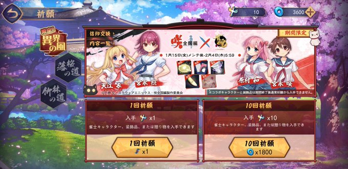 10連1回で咲が来たから結構ちょろいと思った。もう少し回したら和も来たし満足。