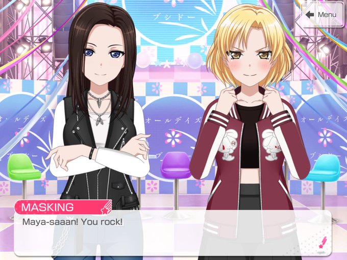 Todays bandori ship of the day is Masumaya! (Masuki/MASKING x maya!) two drummer gfs who love to ramble about their bands to each other…🥹💖