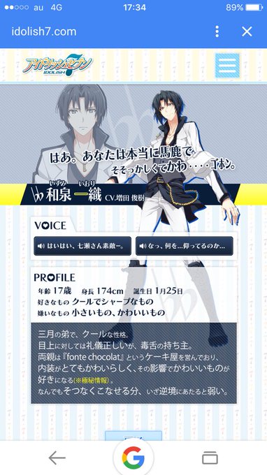 Happybirthday!!遅れました!ごめんなさい(゚Д゚;)一織くん大好きです!かっこいいのに可愛いしツンデレだし最高です!今年もアイナナ&一織くんが活躍しますように!改めて誕生日おめでとう!!