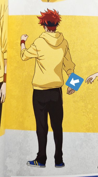 He wears the headband and (bottom part of) hoodie slightly tilted, the length of hoodie strings are always different, and he wears his pants low (so from the hip rather than waist). These were all special instructions by Utsumi.