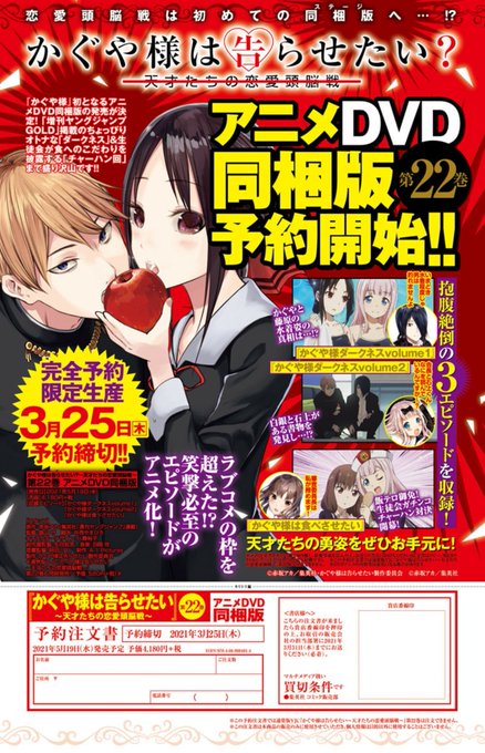 かぐや様は告らせたい〜天才たちの恋愛頭脳戦〜 22巻 OVA同梱版 (ヤングジャンプコミックス) [ 赤坂 アカ ] [楽天] https://t.co/dxN124cz3g #rakuafl