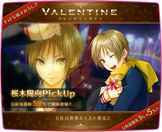 【お知らせ】2/16(火)14:00~2/17(水)13:59「桜木 陽向~2月14日~」(UR)出現率が大幅UPの日替わりPickUpガチャ開催!お見逃しなく! https://t.co/2gF4Nk7Udj #夢キャス