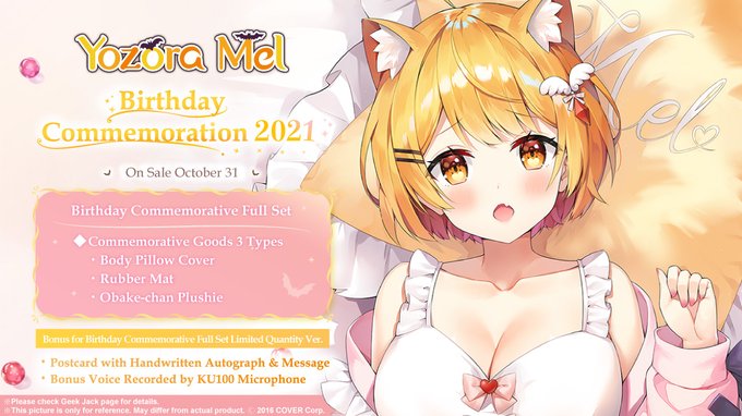 Happy BD #夜空メル !! The Commemorative goods are at GJ, the Body Pillow Cover, Rubber mat and Obake-chan Plushie, all are so cute?? The Full set comes with a Postcard with her autograph + ASMR for good sleep.
