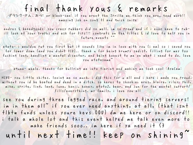 otsuthankyouloveyou! to everyone who has congratulated me or cheered me on along the way! who chatted with me in pubcord or 輝*⁎, sent me a friend request, im so happy~ i couldntve done it without you 🙏