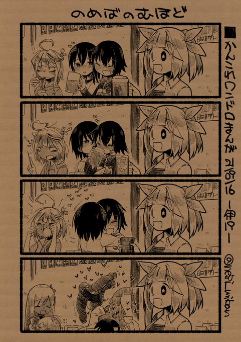 あかしえる先生の作品も素敵な1ページ漫画でのご参加!すぐに仕事モードになっちゃって素っ気ない大淀に、こっそり明石が仕組んだ