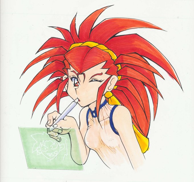 #天地を貼っていきましょう 描き始めて分かりました。天地キャラの描き方や服装など、ほとんどを忘れていることを。ていうか、絵の描き方自体をかなり忘れていました(哀 思い出さねば(汗