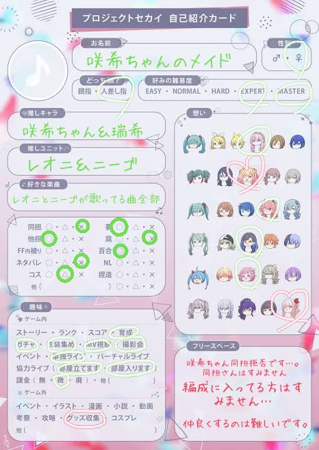 #プロセカ #プロセカ好きさんと繋がりたい #プロセカ自己紹介カード