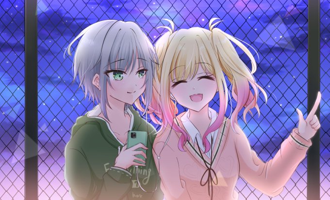 咲希ちゃんと志歩ちゃんはセカイの屋上で一緒に音楽聞くシーン Shira(シラ)さんからのリクエストです✨ #prsk_FA