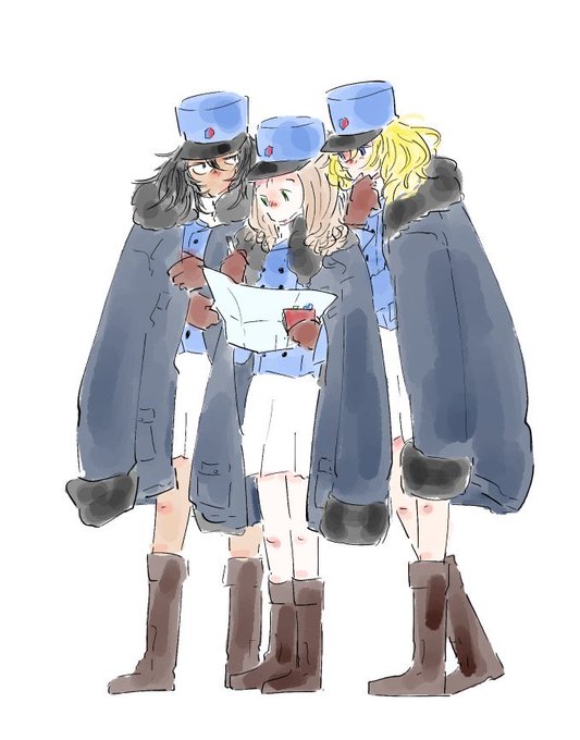 (Found in Skeb) Girls und Panzer: Marie, Ruka Oshida y Rena Andou