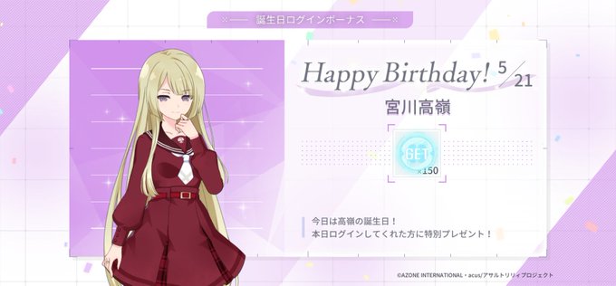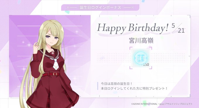 キャラ誕にて『宮川高嶺』さんの誕生日を12番目にお祝いしました!