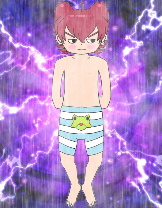一枚目は過去絵にリニューアルしたケロピパンツ履かせたもので、二枚目はケロピパンツ履かせた新しく描いたジンペイくんですね~。三枚目は祝い絵の制服着たジンペイくんで四枚目はジンペイくんとコマくんが合体した姿ですね~。