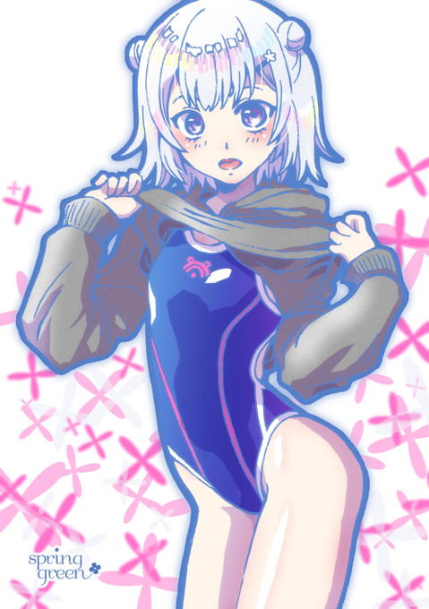 #六花ギャラリー 🎨パーカーの下に競泳水着を着た小春六花ちゃんのイラストです。