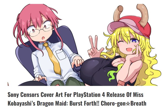 Miss Kobayashi’s Dragon Maid: Burst Forth!! Choro-gon☆ Breath is another in a long line of anime games subjected to Sony's censorship. The cover art has been changed to cover up Lucoa. Get the Switch version instead. Zero tolerance.