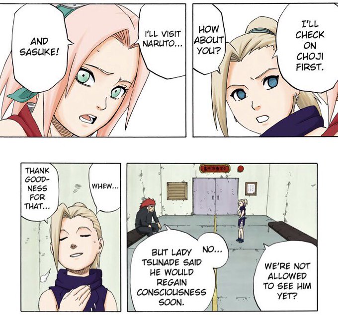 Ino being the best big sister to Choji during part 1, who supports him, visits him in the hospital often & cares about his health more than anyone 🦋🐗