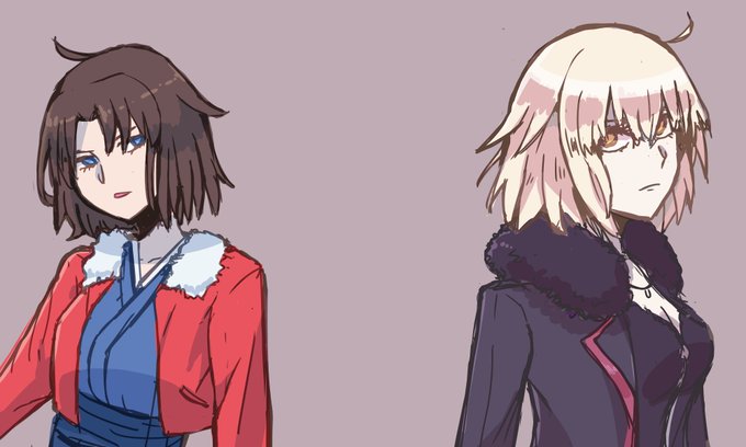 4) Shiki looking at slightly to the left and Jeanne alter looking slightly to the right