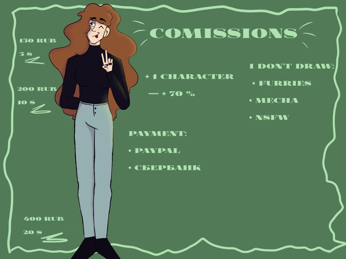 Кстааати френдли ремайндер что я беру коммишки (оплата на сбер, но если необходимо, то заведу бусти)