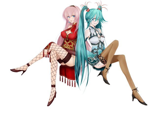 Megurine Luka and Hatsune Miku by Miyuki Rei.