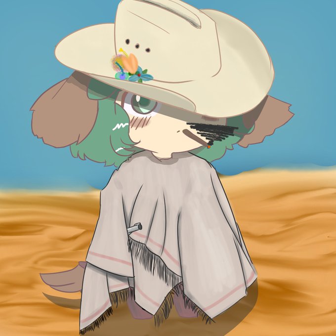 When I saw @EksSkelly_Tweet's comment on a tweet of Kyouko with pancho, I made it my day's duty to draw the photobash. Thus, I present the interwebs Big Iron Ohayou Kyouko!