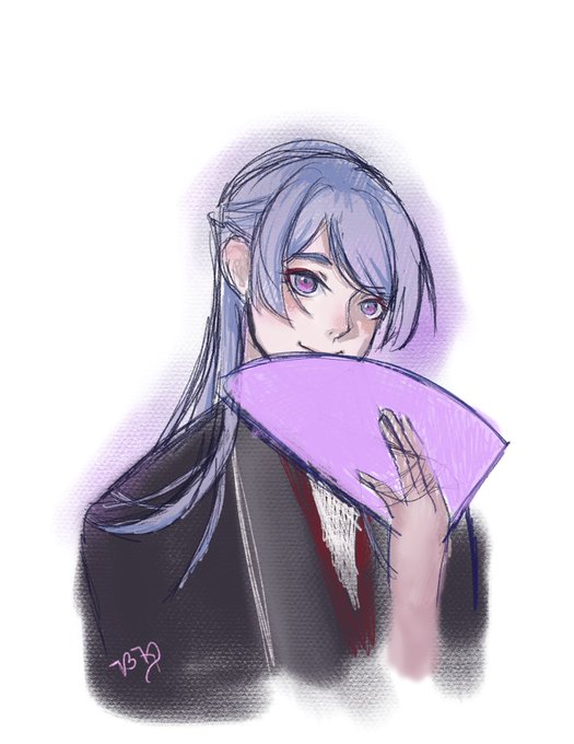 Also last nights late night sketch cause I’ve been thinking about Genzuki with fan a lot lol #上弦画
