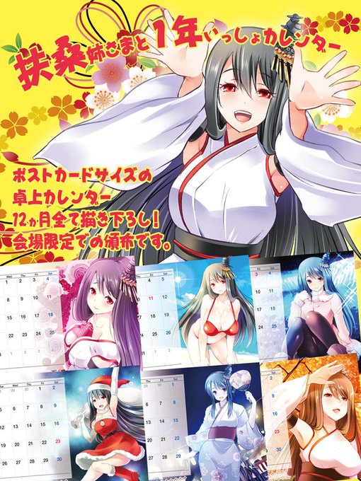 冬コミ新作グッズ「扶桑姉さまと1年いっしょカレンダー」のサンプルができました! 会場限定での頒布を予定しています。 気合の12ヶ月オール描き下ろしです。