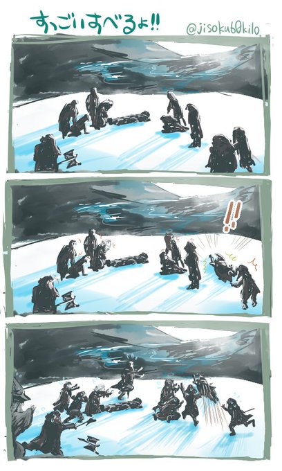 決戦のあのシーン観てる時「一人くらいドワーフ滑り落ちそう」「早く氷の上から移動して…!」ってドワーフのドジっ子スキルが発動しないか横でずっと気にしてたなりさんのせいで、泣いてたのに転げるドワーフ想像してニヤニヤした。