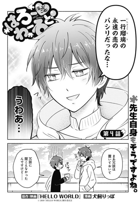 ジャンプ+さんで現在公開中の映画『HELLO WORLD』スピンオフ『はろー(らぶこめ)わーるど』4話が更新されました~!
