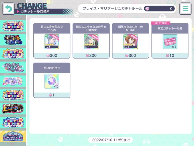 また、今回のガチャからガチャシールをすぐ想いのカケラに交換できるようになっています。