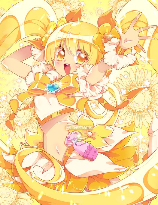 あいらさん(@airandoon )のキュアサンシャインちゃん!作品分からないんですが、キラキラな女の子描くの楽しかった!✨あいらさんと向日葵との相性が最高でした〜!素敵なお写真を描かせてくれて、ありがとうございました〜〜!💓