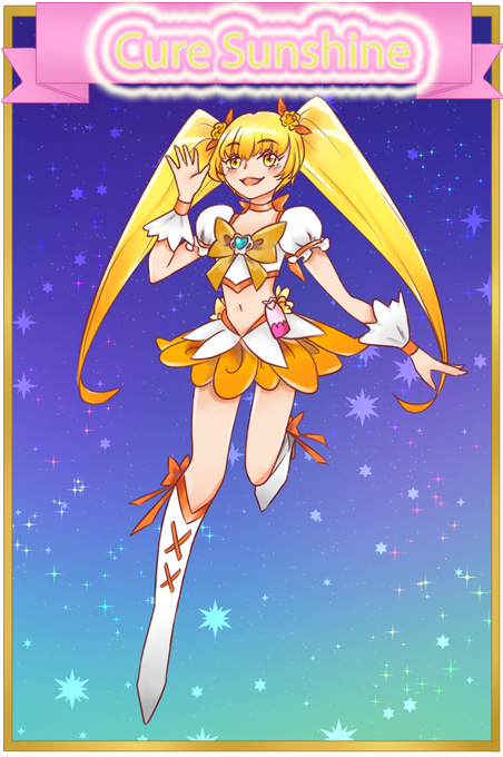 絵が上達する実感って一切湧かないからスッゴイ不安になるんだけど、デジタルイラストはじめて最初に描いたキュアサンシャインと今日描き終えたキュアサンシャイン比べたら確かに上手くなってる