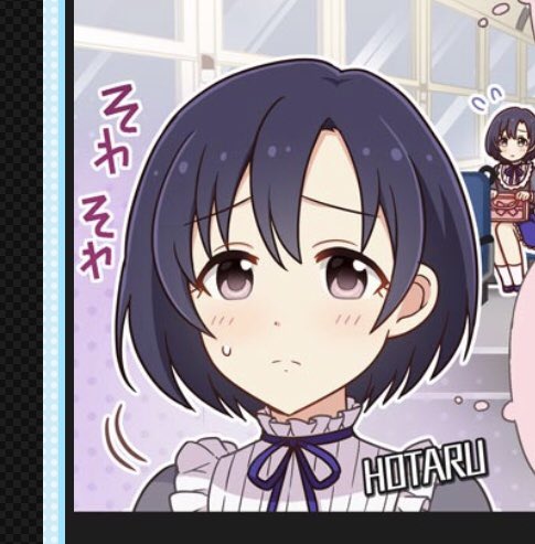瞳子ちゃんのモーション、今までのカードにこれだ! っていうのは無いんですが、片手を曲げて、もう片手は下げるっていうポーズはよく取ってるんですよね。