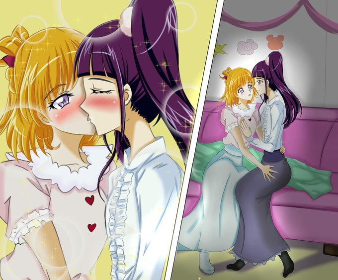 #キスの日 みらリコの過去絵。キスしてる絵はちょうど4枚あった。