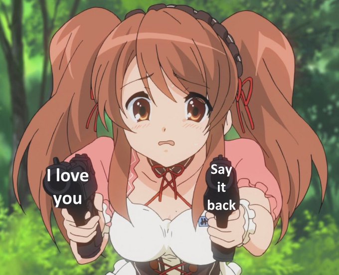 Yall know that meme with the anime girl and the guns? Well I traced it and edited it to make these :)