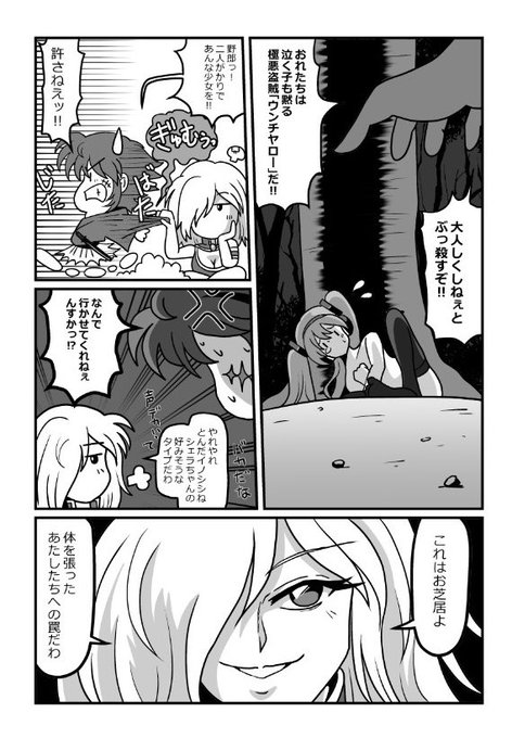 突然森を逃げる少女と(ボカロ風)それを追う山賊二人の現場に遭遇。