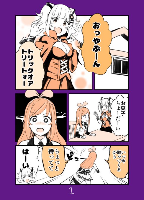 アイちゃんと月ちゃんのハロウィンの漫画を描きました。 #KizunaAI #輝夜月
