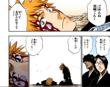 一護にこういう穏やかな表情をさせられる人物が母と妹達や子供のネル以外で織姫ただ一人なの尊い。銀城の「護るべき対象が近くにいてこそ力を発揮する」がまさに核心をついてて、気持ち無自覚でも一護の口からすんなり護るという言葉が出た時点で一護の特別であり恋愛対象は織姫だけだったんだよな